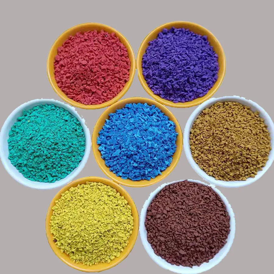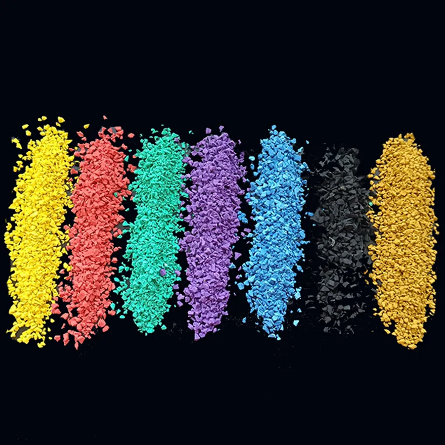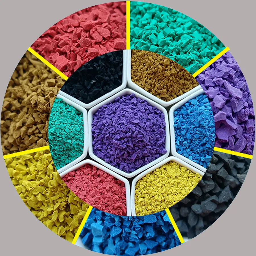 There are two kinds of rubber partickes,black rubber particles and color rubber particles. And the color rubber particles are divided into green rubber particles, red rubber particles, blue rubber particles, white rubber particles, brown rubber particles, yellow rubber particles and other color rubber particles.